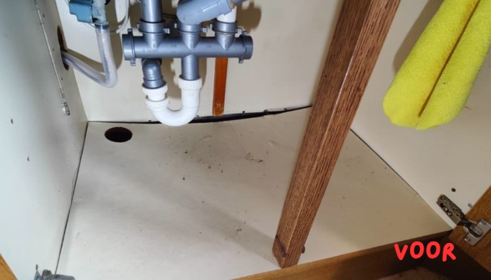 Een kleine herstelling kan voor onze klanten soms een wereld van verschil maken. Deze keer zat de schade verstopt in de onderkast van de keuken: water had duidelijk z’n werk gedaan. Wij hebben de kast in no-time hersteld, alsof het water nooit heeft bestaan.