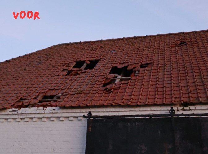 Tijdens de storm viel een boom op het dak van deze hoeve, met aanzienlijke schade tot gevolg. Ons team zorgde voor een vakkundig, snel en feilloos herstel, zodat de woning opnieuw volledig beschermd is. Plan D'Artagnan staat klaar voor dringende interventies en professionele herstellingen.